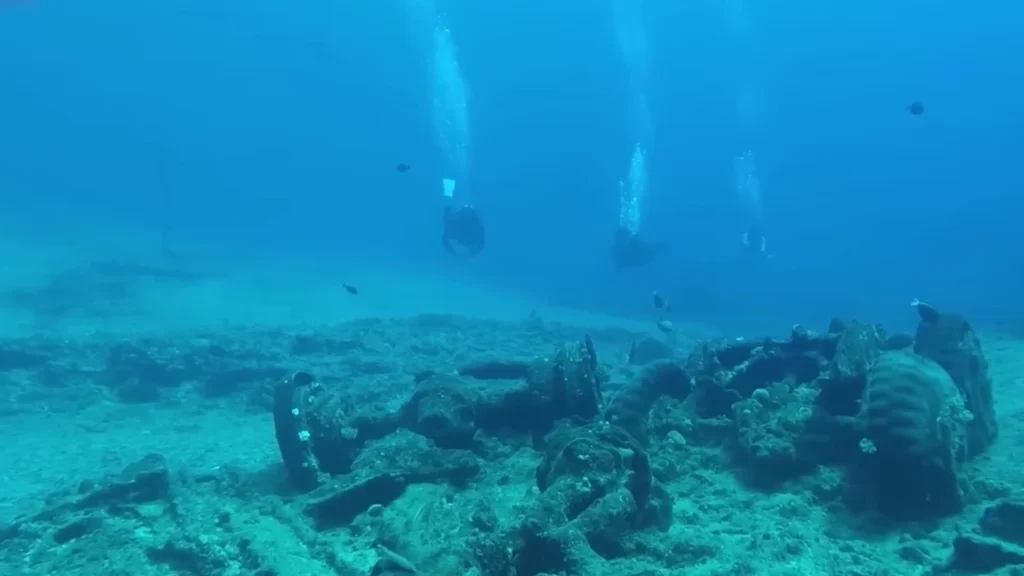 Nhưng không chỉ có bánh xe. Họ tìm thấy mảnh kim loại xoắn giống trục xe. Họ tìm thấy tàn tích hình chữ nhật của cabin xe chiến – giờ chỉ còn là đống đồng hoen rỉ và gỗ bị hóa đá, hoà vào đáy biển sau nhiều thế kỷ san hô phát triển.