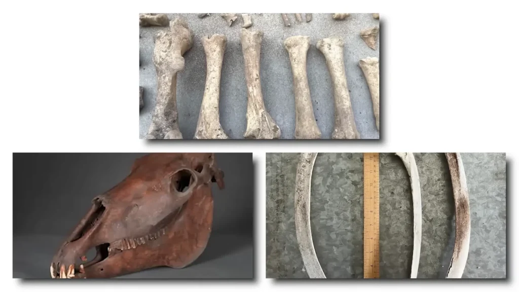 Rồi họ tìm thấy xương. Lẫn lộn trong đống xe chiến là các mảnh xương – hàng trăm, có thể hàng nghìn mảnh. Một số rõ ràng là của động vật: đầu lâu, xương sườn, xương đùi ngựa – chính xác ở vị trí của chúng khi cột vào xe chiến.