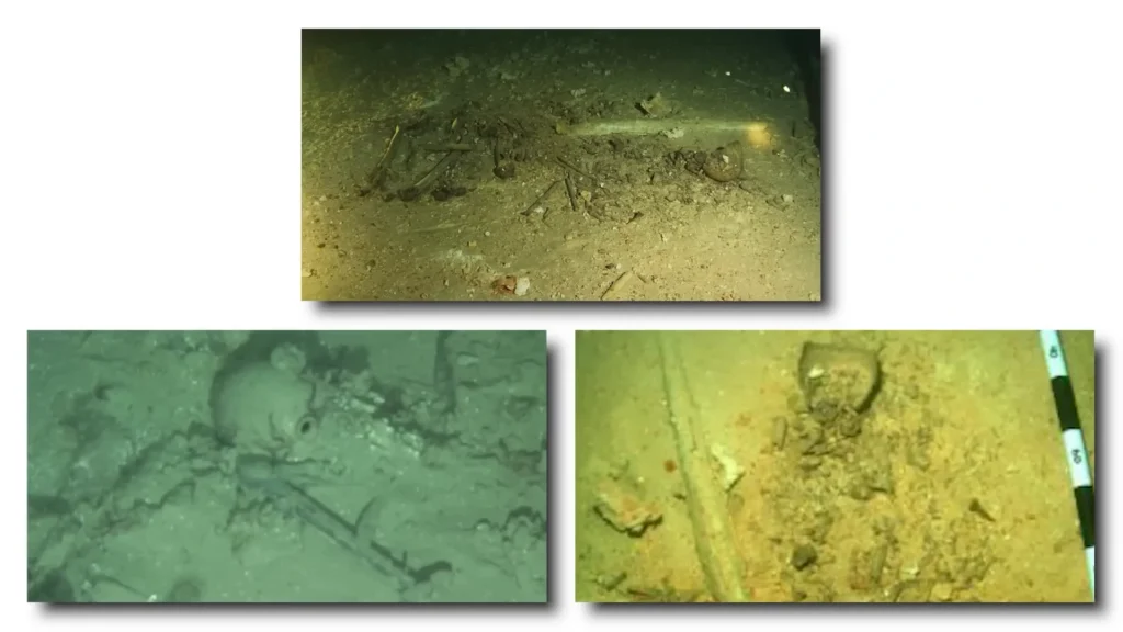 Những cái xương khác rõ ràng là của con người. Xương sống, xương chậu, mảnh đầu lâu – nằm lẫn lộn cùng nhiều thứ khác dưới đáy biển.