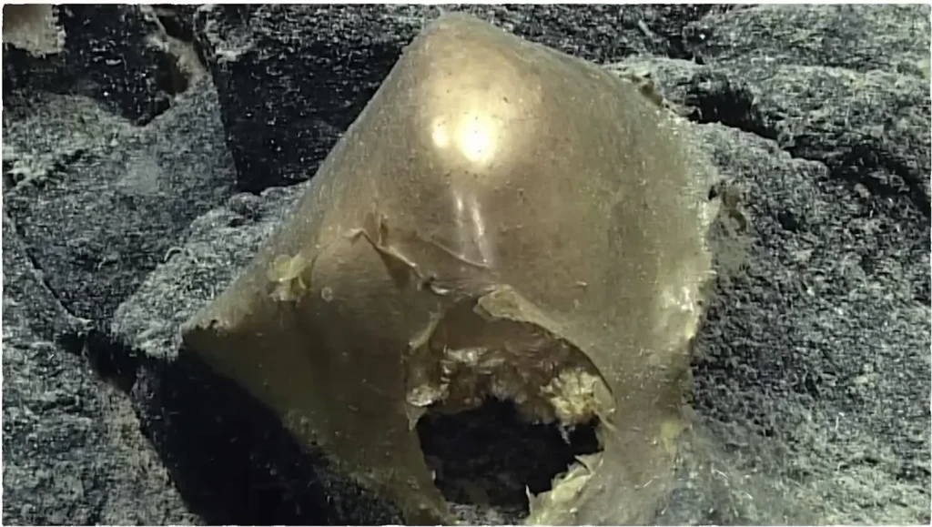 Họ thả xuống một robot tàu ngầm nhỏ lặn sâu hàng trăm mét. Đèn công suất cao xuyên qua bóng tối. Lúc đầu chỉ có cát và đá. Rồi đột nhiên, lẩn khuất sau đám cát là một hình tròn hoàn hảo bị san hô bao phủ hoàn toàn.