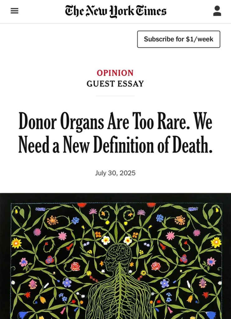Thậm chí tờ New York Times còn kêu gọi “nới lỏng định nghĩa về cái chết” để “lấy được nhiều nội tạng khỏe mạnh hơn từ người hiến.”