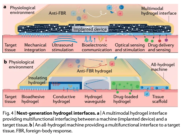 Vấn đề vào năm 2018 đã được đại học MIT trả lời trong bài viết “Lớp trung gian hydrogel giúp hợp nhất con người và máy móc” vào năm 2022. Trong đó viết rằng: các máy móc làm bằng vật liệu rắn chắc, khô và phi sinh học, tương phản với các mô sinh học mềm và ẩm ướt, vì thế khó có thể kết nối con người và máy móc trong thời gian dài, ổn định và hiệu suất cao. Để giải quyết vấn đề này, vật liệu hydrogel đã xuất hiện và trở thành ứng cử viên lý tưởng làm trung gian giữa con người và máy móc, bởi vì nó vừa có tính chất gần với mô của con người, vừa dễ lập trình và có thể tương tác với máy móc theo nhiều cách khác nhau.