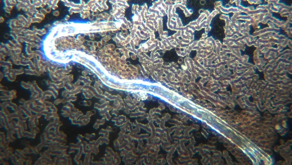 Sau khi tắm nước nóng, các sợi tơ nhân tạo có thể trôi ra khỏi cơ thể của người đã tiêm vắc-xin,. Chúng có thể phát sáng dưới ánh đèn tia cực tím. Những sợi tơ này còn có thể tự co giật, đồng thời chúng cũng có xu hướng bám dính vào da người. Video sau cho thấy một sợi tơ đang cố gắng bám vào ngón tay người.