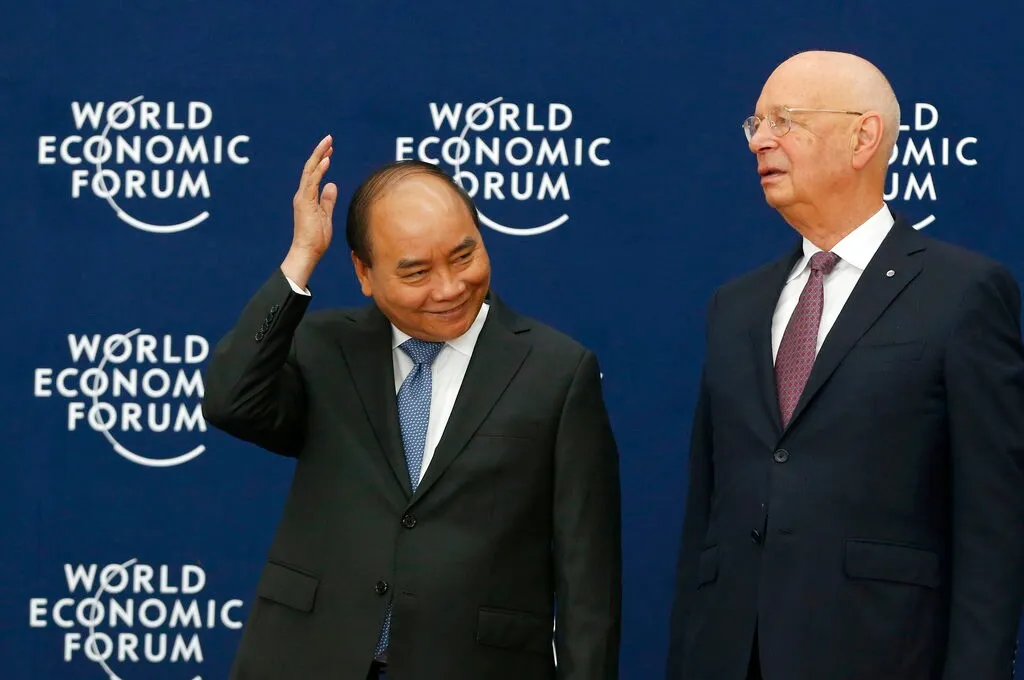 Ngoài ra, đại diện của Việt Nam cũng thường xuyên đi họp ở Diễn đàn Kinh tế Thế giới, nghe các bài thuyết giảng của Klaus Schwab, rồi sau khi ra về cũng thường hay nhắc đến “cách mạng công nghiệp 4.0”, “toàn cầu hoá”, “công dân toàn cầu”, “thành phố thông minh”, “thành phố 15 phút”… đó thực ra đều là nói về kế hoạch chính phủ độc tài toàn cầu của thế lực ngầm. Các cụm từ và tư tưởng này đã được đưa vào chương trình giáo dục trẻ nhỏ ở Việt Nam, đưa vào chương trình quy hoạch đô thị.
